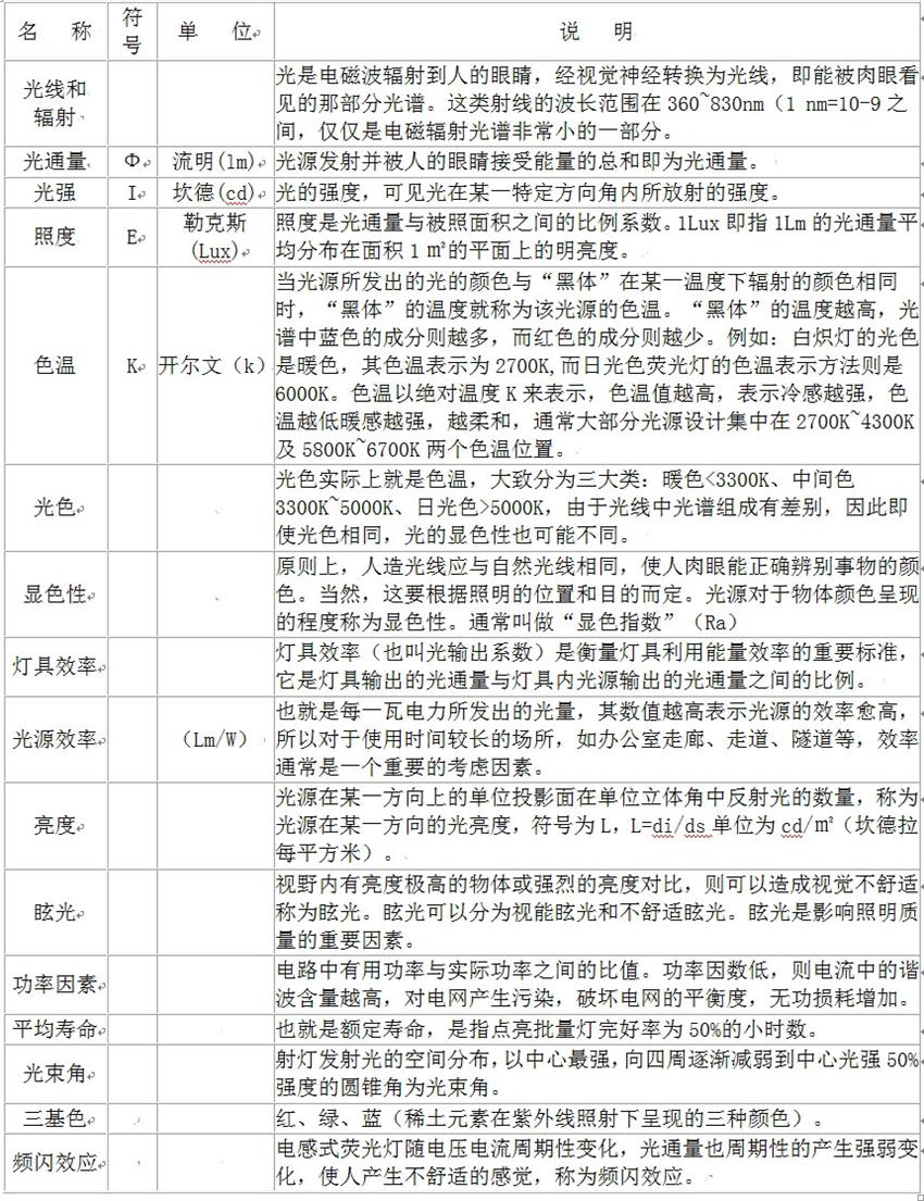 照明基礎(chǔ)知識參考
